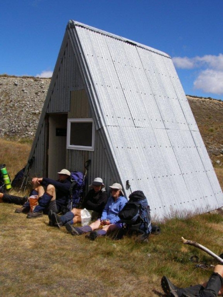 Sunday morning and even Jane was up by 6:30am. with tents dry and all packed up we were on the homeward journey by 7:30am. An easy 3 hours over Redcliffe Saddle with some wonderful views across to the Craigeburn Range and up the Rakaia River brought us to the car park. A water pipe standing up out of the ground with a tap on top near the exit gate was made good use of before changing into our homeward bound clothes. After retrieving Bill’s vehicle from Glenrock we made our way to Methven for a very enjoyable lunch at the Blue Pub before returning home from a successful weekend in the company of;