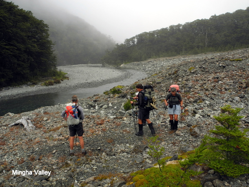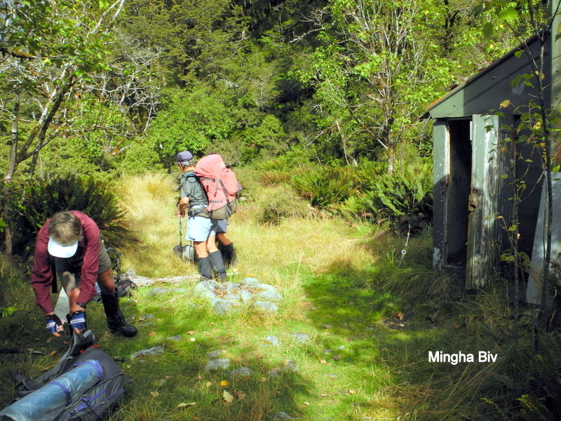 The track down to the river flats demands your attention as it is quite rough with steep steps in places. Once out on the flats with easier going we stopped to chat with a camping party, the two girls about to bathe in the stream nearby obviously not expecting company. “Nothing we haven’t already seen before!”