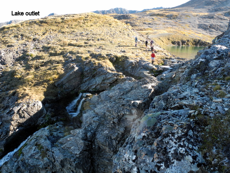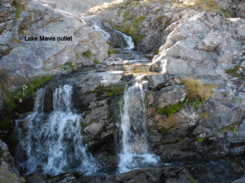 Little sleep was had by some of us so it was pleasing to see daylight on Sunday morning and get breakfast over early so we could get on our way in clear skies with no fog. One hour uphill and Lake Mavis began to show. Several people had camped up there for the night and were making their way down. After shedding our packs we had time to explore around the outlet while waiting for the sun to appear over the ridge to paint a new picture of the lake.