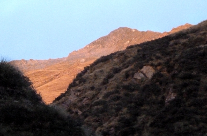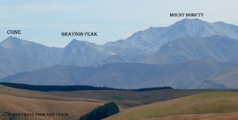 We carried on towards the Manuherikia River and after about 5km of challenging (for me as I haven’t done much of it) 4 Wheel driving with several river crossings we arrived at our destination of Boundary Creek Hut near the East Branch of the Manuherikia. The DOC hut is a tidy 8 bunk hut with a fire place and a very small creek behind. We organised our sleeping arrangements, some of us put up a tent, 3 slept in the hut. Then we set off on foot to explore Mutton Creek track, a 4 wheel drive track over a saddle just across the river. We enjoyed pleasant views as we also tried to figure out a way up the ridge to Mt. St. Bathans, our object for the next day.