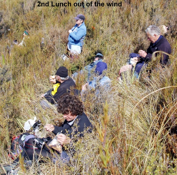 A short walk across Table Top to the S W corner gave a good view of the location of Staircase Hut and the route to and from it along Staircase Ridge. Returning to the track we visited a hunters shelter before locating a nice spot in the sun for a long lunch break.