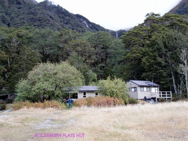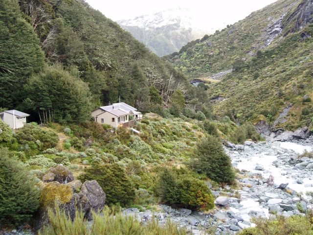 Our party of eight started at Chinamans Bluff, Dart end with windy but pleasant overhead conditions. The walk beside the Dart River was easy going, while taking in the action of the many jet boats thrilling their passengers. The constant change of scenery from forest to open tussock to mountain views soon brings us to Daleys Hut for lunch. Sandflies are aplenty but its only the females that bite. With an afternoon of socialising the time soon passes. The forecast for day 2 is for rain and more rain and so we bunk down with wet weather thoughts on our minds.