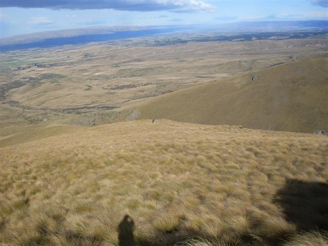 After lunch we realised we were not quite on Mt Buster as it was about 500m to the south of us on a rocky knob, so we headed over to it and climbed up on top while trying not to get blown off. We had great views of the top of the surrounding mountains, Maniototo Plains and the Buster diggings. The summit of Mt Buster is 1334m.