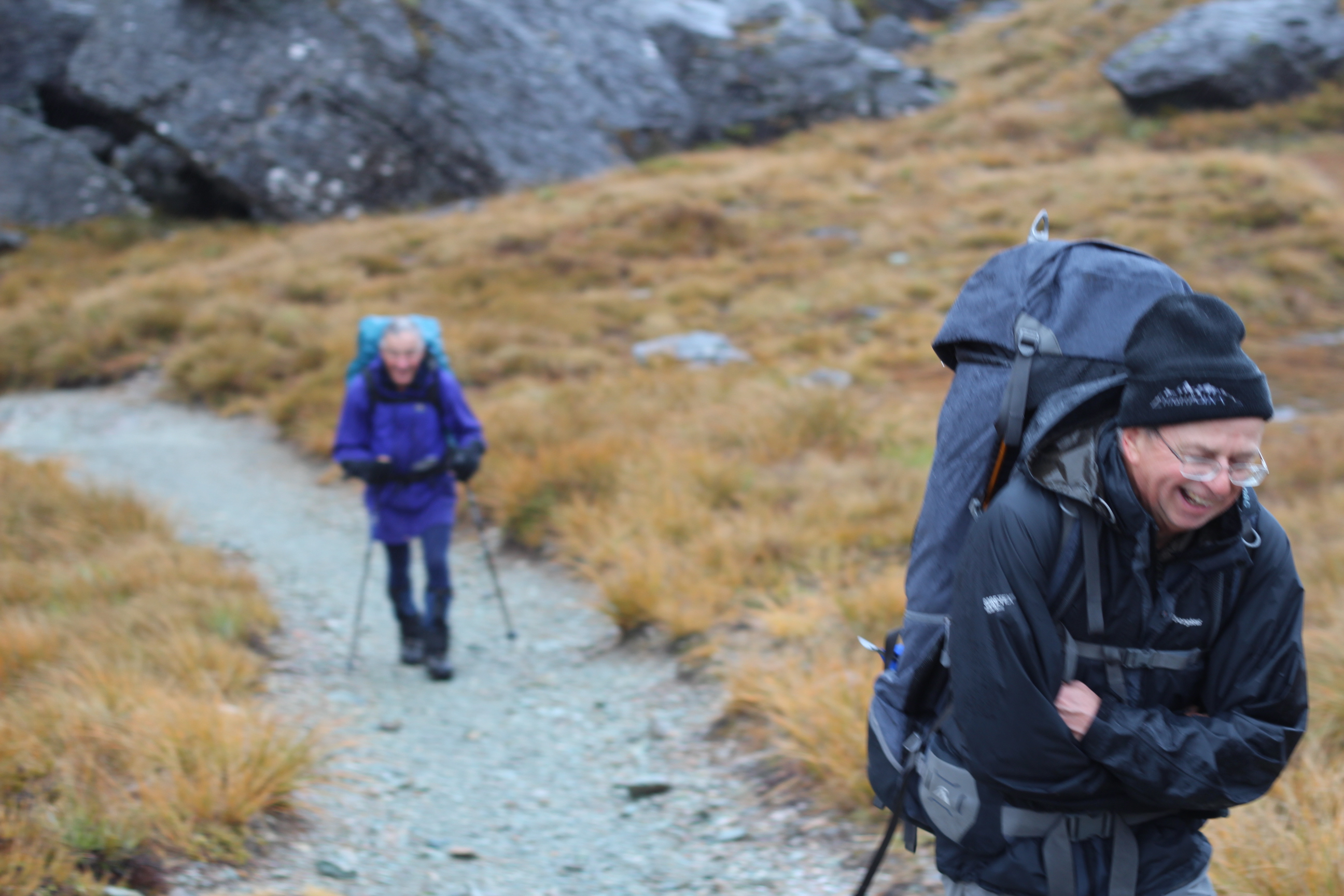 As we made our way across the tussock flats and along the water course tracks, the white waterfalls appeared, cascading down the mountainsides. The bush appears a vibrant green enjoying the drenching, sidestreams aplenty and the need for care when crossing. Its good to belong to a tramping club with experience and good judgement in the party.