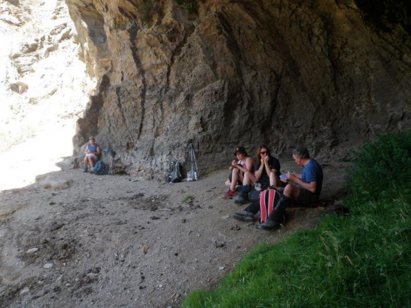 We had reached the caves shortly before 1 o’clock and, given the prospect of a 2 ½-3 hour climb back and the long drive home, it was decided not to go further down the valley to the Three O’clock Stream which Orbells Creek flows into and which, in turn, joins the Taieri River near Hindon. So, at around 1.30 we set off on the return journey, stopping to admire the remains of a previous al fresco party before making a fairly leisurely climb back to reach the car at around 4.30. The return to Oamaru was interrupted to enjoy the giant ice creams which are a feature of Hampden. The splendid day in interesting country new to most was enjoyed by Mark, Nicky, Kayla, Bronwyn and John.