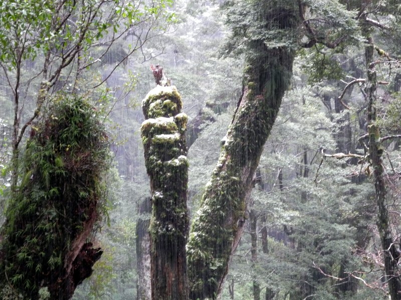 With bad weather forecast for the next few days, I had my doubts about embarking on a trip to Southland to walk the Hump Ridge Track. However after picking up our fellow trampers, nine of us set off for Tuatapere in a mini-van anticipating rain and snow over the next 3 days. First stop was in Gore for tea and then we carried on to our accommodation at Tuatapere, arriving in daylight. The host was very helpful and gave us three rooms so none of us had to climb up to top bunks. [The climbing was still to come]. Some went and explored the township in between rain showers while others played table tennis and watched television, before retiring to bed.