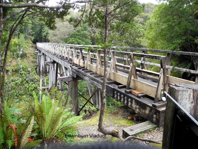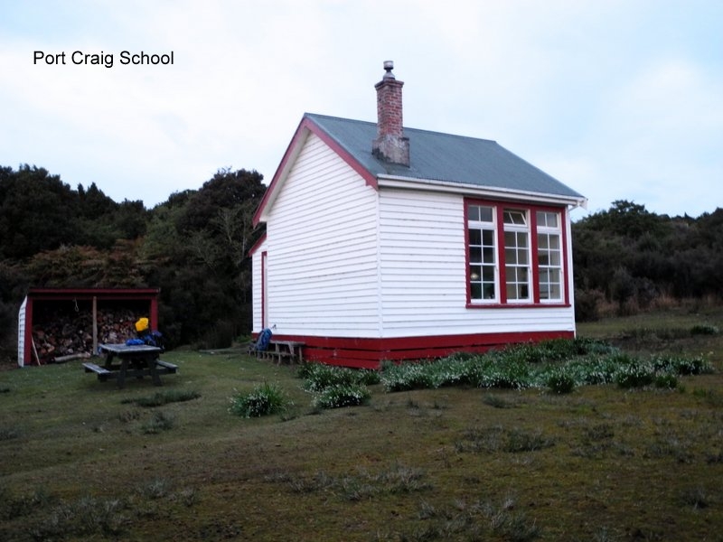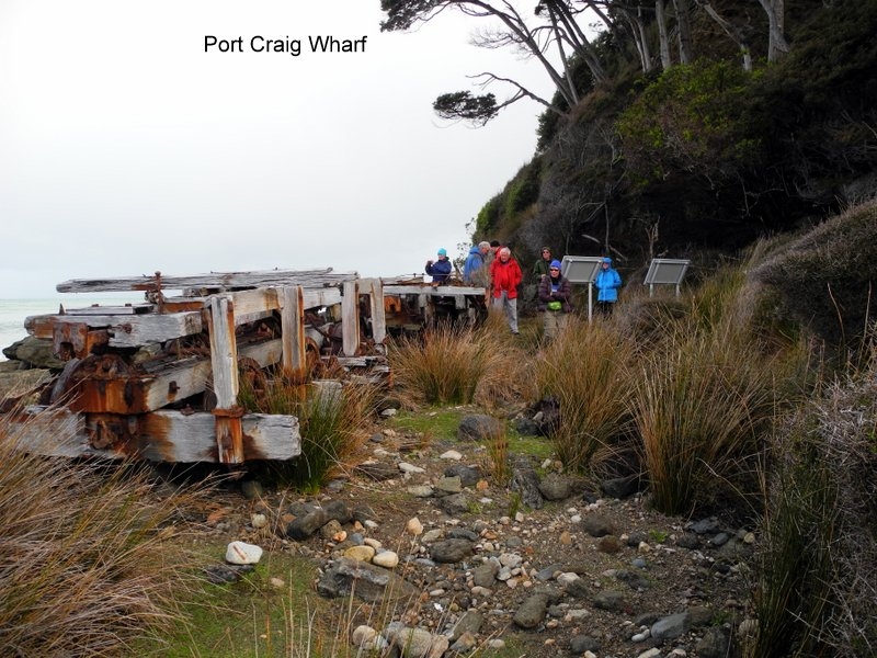 We were joined by 4 other trampers for the night. A game of UNO kept us entertained with Neville coming out the winner, meanwhile the temperature outside remained in the minus’s. A loud clap of thunder and a spectacular flash of lightening startled us all, but fortunately that was to be the only one. With extra clothing on, we slid into our sleeping bags and hoped for good weather the next day. More snow fell during the night, but no rain. As it was murky and windy in the morning, we decided not to walk the loop around the tarns, instead leaving at 8:30am we backtracked for 30 minutes to the turn-off to Port Craig. Boardwalk and steps up and down took us to Luncheon Rock where we got views through the parting cloud of Te Waewae Bay, Lake Poteriteri and a viaduct. An early lunch was taken in the shelter before descending through the podocarp and silver beech forest to the junction with the tramline at Edwin Burn Viaduct. After following the tramline we reached Percyburn Viaduct which was closed due to restoration work. A detour took us down steep steps, across a bridge and a climb up the other side, while viewing the underside of Percyburn some 36metres above us. Second lunch was taken on the veranda of the Percyburn Restoration Trust Hut before a long walk on the tramline to Port Craig Hut where we arrived at mid-afternoon. With the luxury of running water at 2 sinks and an efficient log fire we were soon relaxing in the old converted school. Later we took a tour around the remaining relics and out to the remains of the old wharf at the Port Craig Town. On-site interpretation panels enabled us to get an insight of how the timber was milled, handled and shipped out between 1916 and 1928.