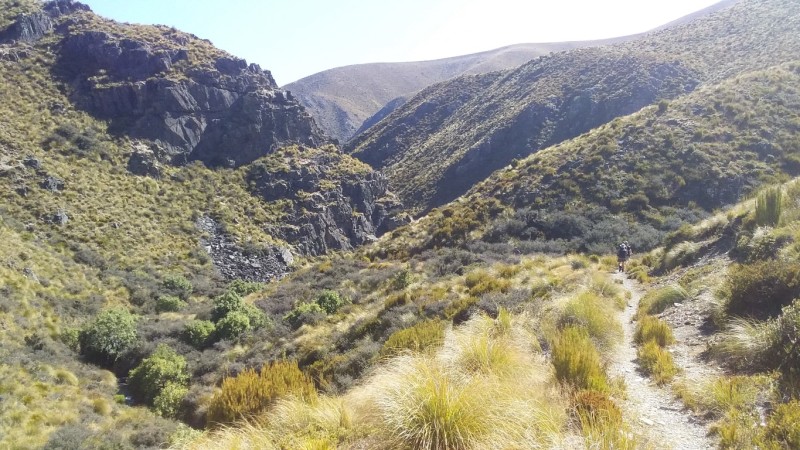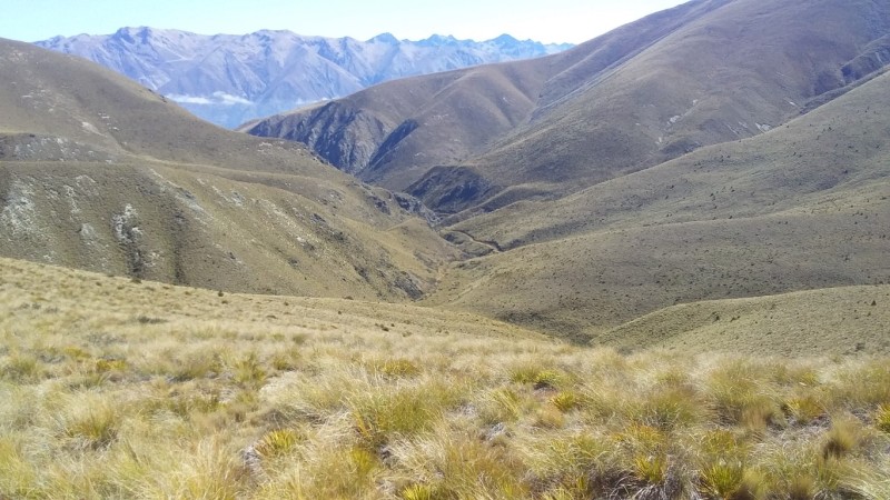 After lunch we dropped down the north-western side of the peak to meet back up with the 4WD track again and after an hour walking, we meet the junction of the Greta Stream track. We headed down the headwaters of Greta stream with an abundance of wilding pines scattered across the slopes and into the gorge.