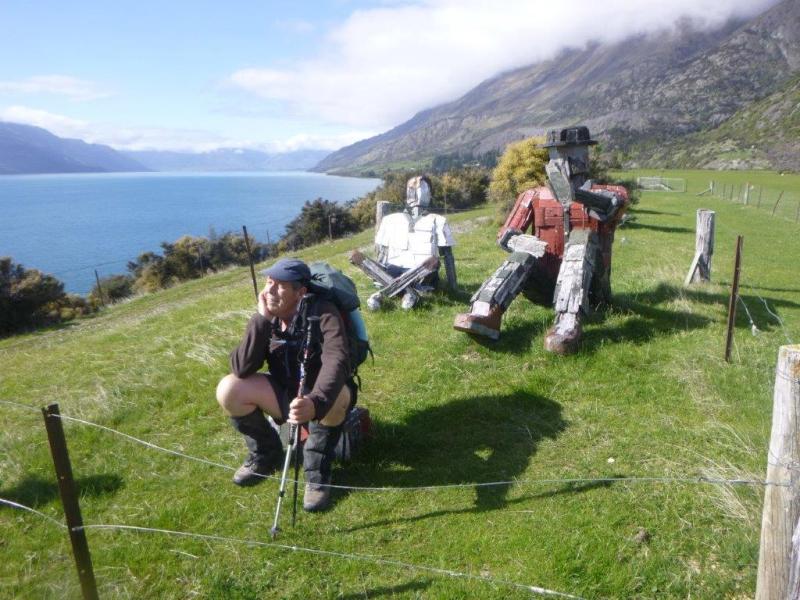 Day 3 Moke Lake: John, Neville, Lois and I left the others at Kinloch as they were to drive back to Oamaru. We drove down the Glenorchy/Queenstown road and turned into the Moke Lake Road just before Queenstown. Reaching the lake 20 minutes later, we walked around the lake which was mirror smooth. The track is suitable for biking and has been upgraded recently with culverts and board walk over the wetland area. Also a track leads down to Lake Dispute. There is a high point of the track on the peninsula which is ideal for a stop. Two hours later, back at the camping area, we had lunch before heading home via the Crown Range to drop off Lois. The highlights for the weekend included the freedom to walk in a beautiful area and remember that early settlers had struggled for a long time. To think about how they got the gear that weighed tons to the Invincible Gold Mine site. To realise the dependency on the Earnslaw for provisions prior to and after the road opening in 1962. But the best highlight was the company of Lois, John, Neville, Karyl, Jenny and Graham. Bess.