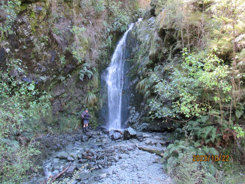 At the head of the valley before you climb out, we had to re-route the track in places because there had been some small slips and the pigs had made a bit of a mess. It was about 2.30pm when we reached the forest road and instead of going up the road and back down passed Arns peak like we have done in the past, I decided that we would walk down the road to everyone’s joy to Horse range road which I hadn’t done before.