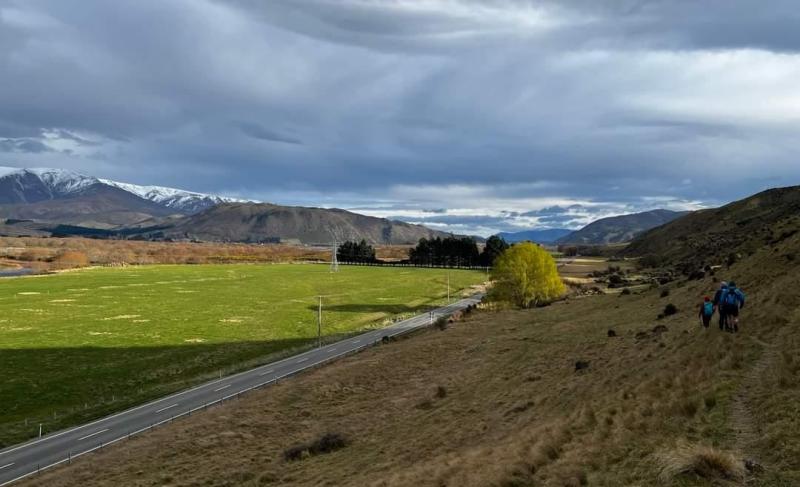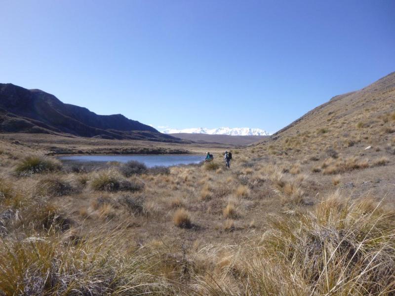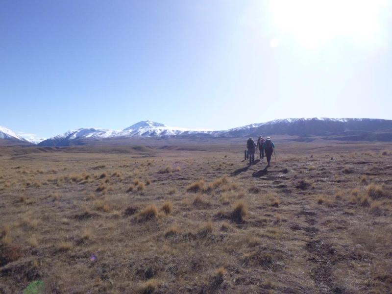 From the saddle all eight of us retraced the footsteps of the first group, heading northwest along the Te Araroa track and around the Lake, across the tussock lands and wetlands with incredible vistas of the Alps ahead of us. The western carpark at the end of Lake Clearwater was a handy carpark to pick up tired trampers in the late afternoon.