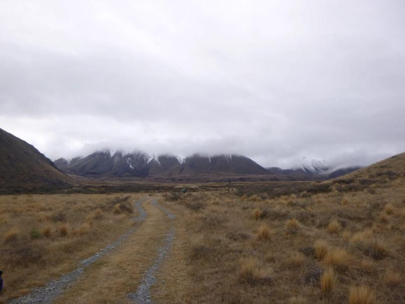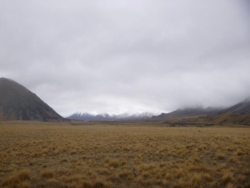 Snow and rain fell that night, so it was a cold start to Sunday. But with the promise of the weather clearing, we headed to the wide tussock lands of Lake Heron, parking at the Lake Heron carpark, hoping to walk to Double Hut by lunchtime. But the weather closed in, and we all turned back to the cars, heading straight into a sleet storm. Every item of warm and waterproof clothing was hurriedly pulled from our packs.