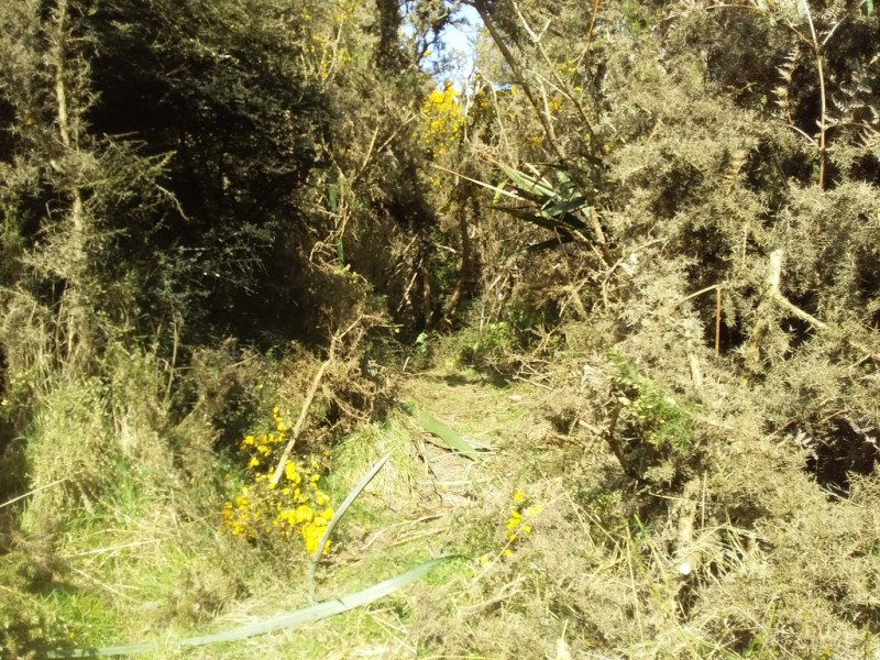 We headed up past the Otago University hut, crossing Trotter’s Creek several times till we came to the clearing where the valley splits up past the hut. We took a track to the right and crossed Trotters Creek and up towards the eucalyptus trees. Along the way on this track, we had a bit of a cut back of the gorse, but it wasn’t too bad up this track to the entrance of Dave’s track just under Arns peak.