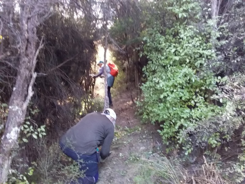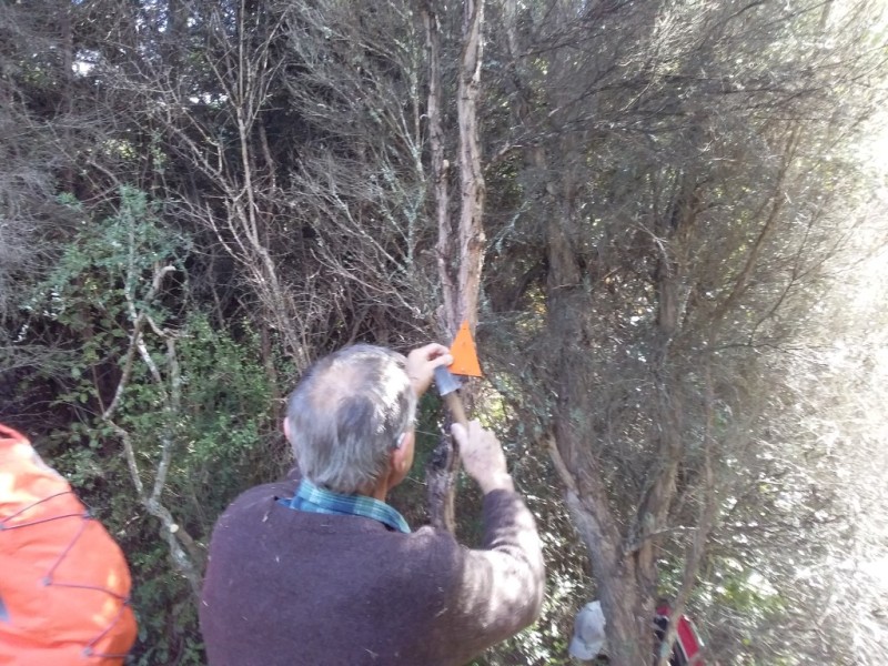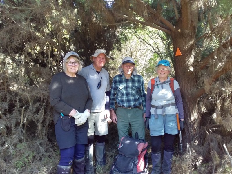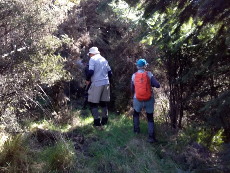 We cut back the entrance a bit and climbed up a good track and around the base of Arns peak, having a bit of a cut back along the way. Morning tea was taken before we dropped back down into the wee bushy valley. The plan for the day was to have a wee cut back and put some new markers up and having time for a walk in the area after lunch, but we got carried away a bit and spend most of the day working our way up the valley, having a good cut back and putting up new markers.
