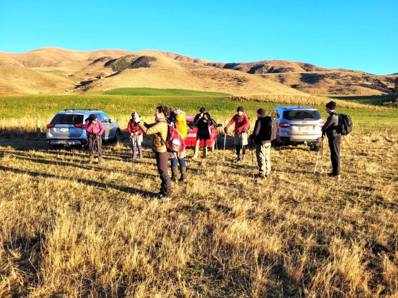 After a week of fluctuating weather forecasts, the day dawned fine and nine trampers left Oamaru