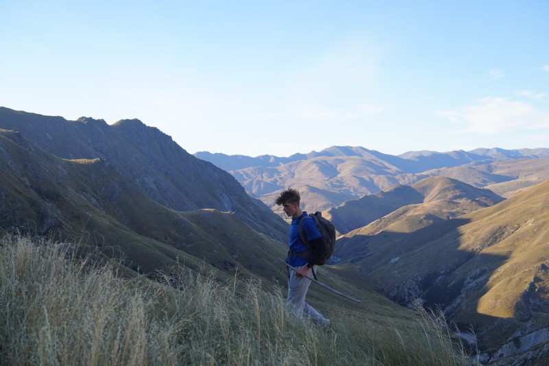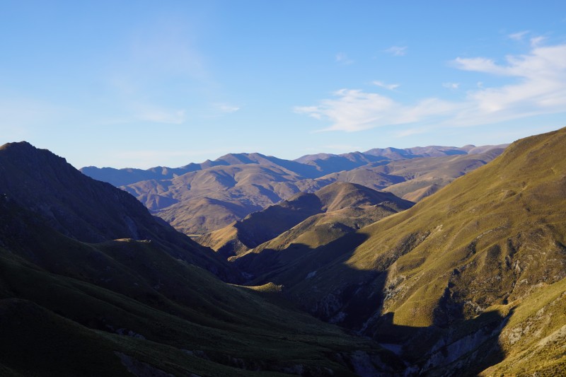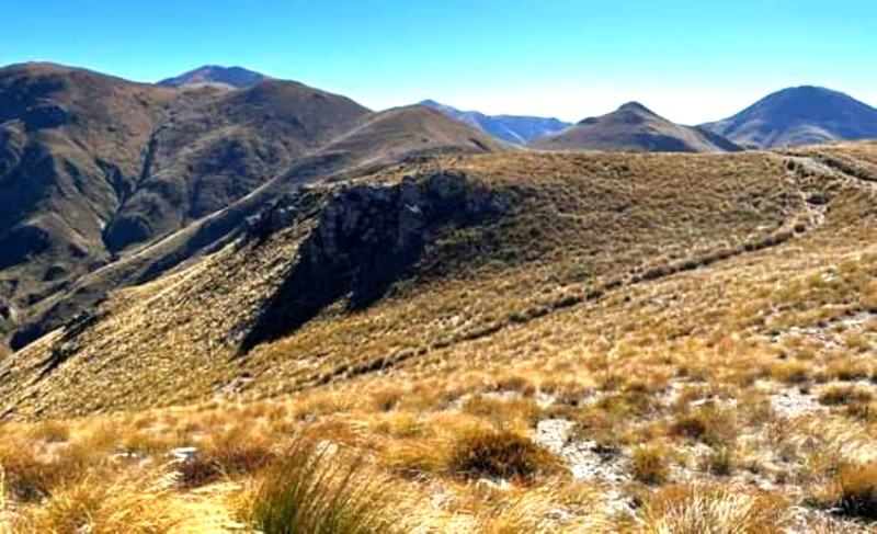 Leaving at 8am the next morning to climb back up the hill, we reached the saddle by 10am, so we had time to walk for an hour north along the ridge to a small tarn. The day was perfect, windless and sunny, and the views up the Ahuriri valley over to Mt Barth, Mt Huxley, and Mt Maitland were magnificent. Another hour back to the saddle and a quick descent in an hour to the carpark made for a comfortable five hour walk in all.