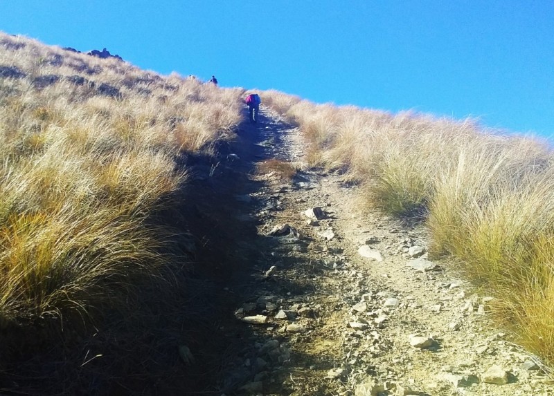 It was the same for the very steep climb out of the river bed going up the initial part of the Staircase ridge, probably as dry as I have seen. One of the young fellows developed blisters fairly early on which were dealt with on a few occasions during our walk, hopefully it didn’t put him off altogether. The track had ben trimmed since the last time I was there and the going was relatively easy.