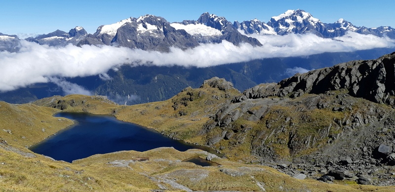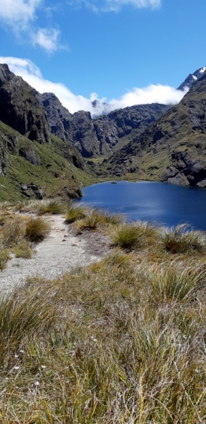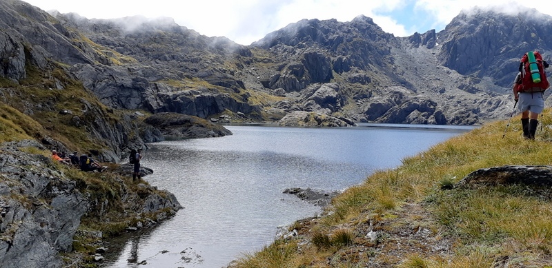 At the Harris Saddle, after lunch it was time to leave the highway and take the side track leading us down the face and around the edge of Lake Harris and into the Valley of the Trolls. ( But not a troll in sight)