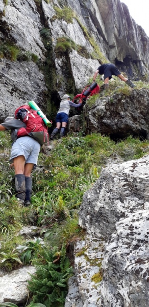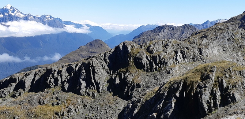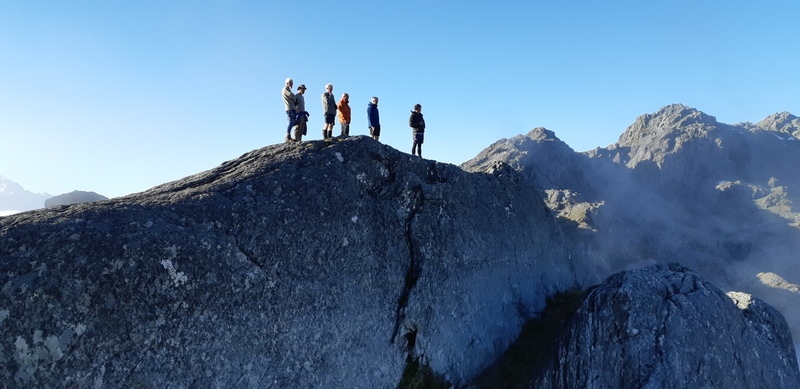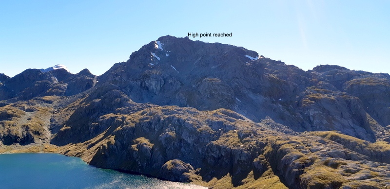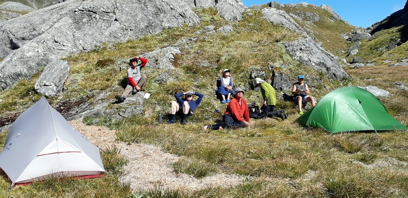 From our vantage point we were able to see the Erebus team on their high point along the skyline, not quite making it to the summit though. With so much to view all around including Lake McKerrow, the Hollyford Valley and the Tasman Sea there was no hurry to leave, but soon it was time to go back to the camp.