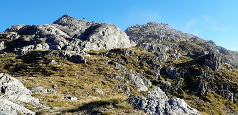 Our party of three opted for the easier route on the West ridge, checking out the many alpine flowers and plants while four others were making an attempt on summiting Mt Erebus and the third party made their way to the saddle between Mts Erebus and Xenicus for viewing into the North Routeburn and Flats Hut.