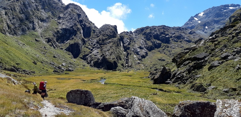 Back down the steep gut from the outlet to the valley below and once again we linked up with the Routeburn Track just below the Harris Saddle Shelter.