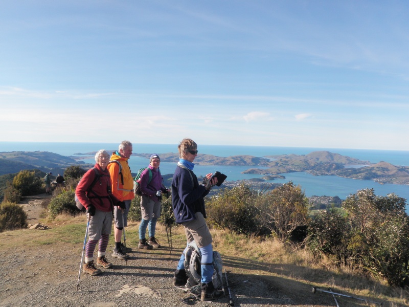 We loitered on the summit to take in the 360o panorama, from the snow-clad Lammerlaws and Rock and Pillars in the west, past the Silverpeaks and Horse Range to the deeply sculpted coastline to the north, the spectacular Otago Harbour in the east and Dunedin City to the south. We then returned down the track to settle in a sunny, sheltered nook overlooking Blueskin Bay for lunch.
