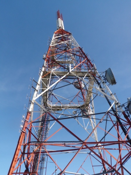 Five trampers set off at 9.45 am from the Bethunes Gully car park in north Dunedin, having driven the 114 kms from Oamaru. The day was fine – not a cloud in the sky – and brisk, with a heavy frost in the secluded valley. The track is dual purpose in its lower reaches, although no mountain bikes were seen, and it winds steadily at a reasonable gradient up from Lindsay Creek. It initially passes through stands of towering conifers with native undergrowth, but this soon changes to lowland native forest, becoming more stunted as it climbs and transiting to subalpine associations dominated by Dracophylla near the top. At about the half-way point, a short loop track goes off to the east, where we stopped for smoko. We then re-joined the main track via the apparently unused return leg of the loop and carried on to reach the top ridge shortly before midday. There we turned left for the final 20 minutes up to the summit, dominated by the 105 metre television mast.