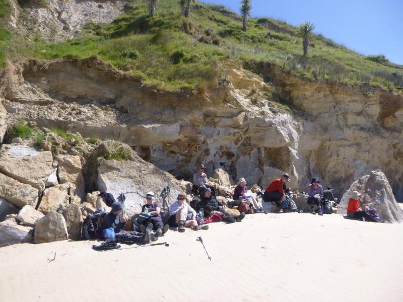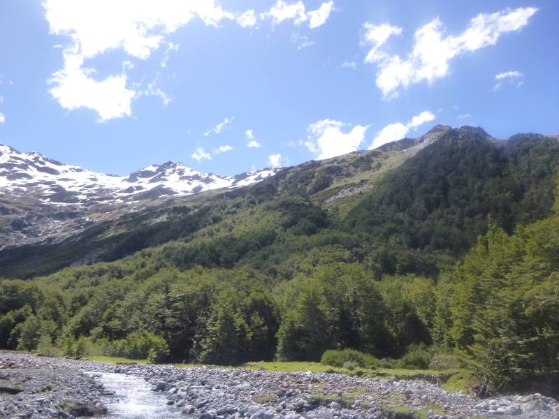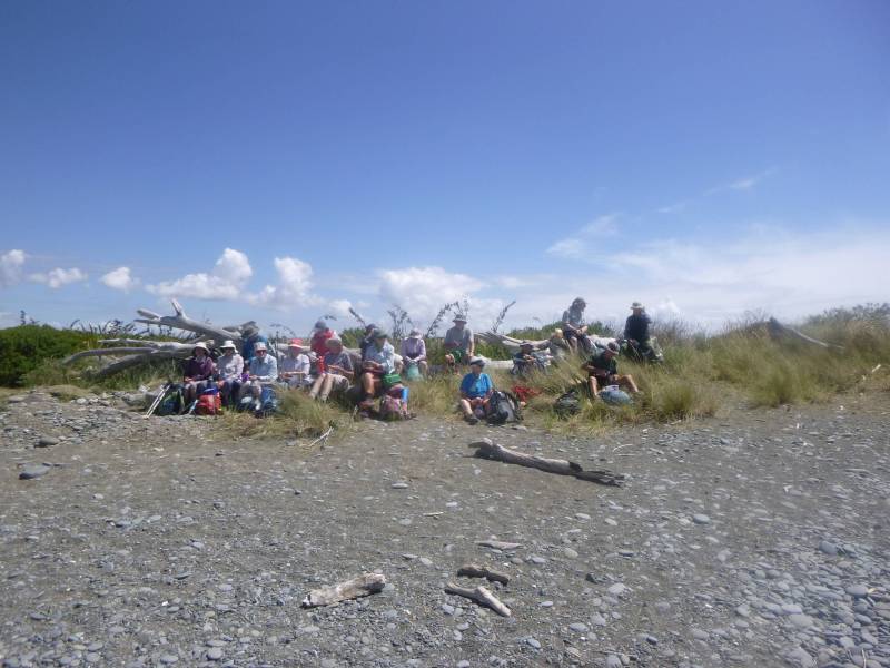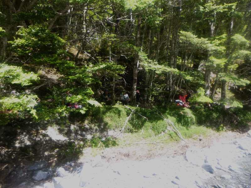 Once on the other side it was very apparent as to how high the river had been, at times the markers were a little difficult to find. By 10.30 am everyone was ready for a morning snack, so after having walked through beautiful beech forest we suddenly came out into a grassy clearing, our morning tea stop overlooking the river.