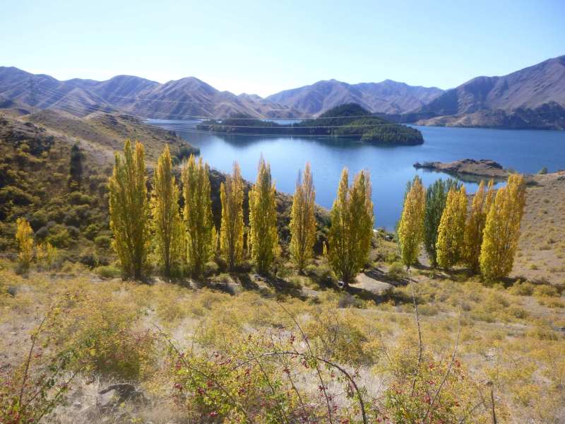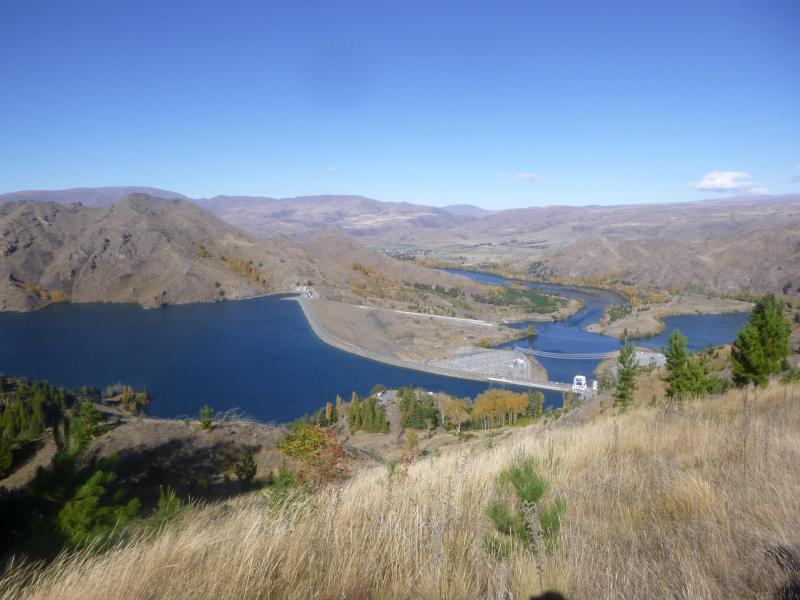 Lunch over, the now united group set out along the river track, rather than following the bike track up to and around the winery. At one point, progress was slowed by the need to clamber over a large, recently wind-felled willow which resisted removal by either Swiss army knife or Silky-saw. A little further along the track largely disappeared, offering only relatively clear going alongside the Waitaki. Then a fence and gate showed that we were back on familiar ground. At one point, we stopped to admire a flock of terns dipping and wheeling over their nesting site on an island. Shortly we met up again with bike track which we followed until it turned south towards Kurow whilst we kept on towards the Kurow Bridge. There, it was through a small gate, a scramble up the road bank, a short road walk to reach the cars shortly after 2pm, and welcome ice-creams.