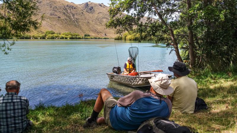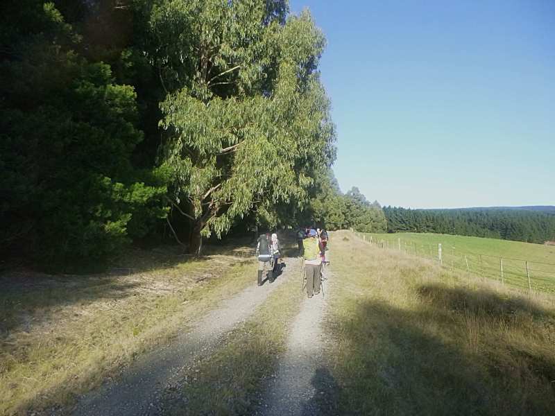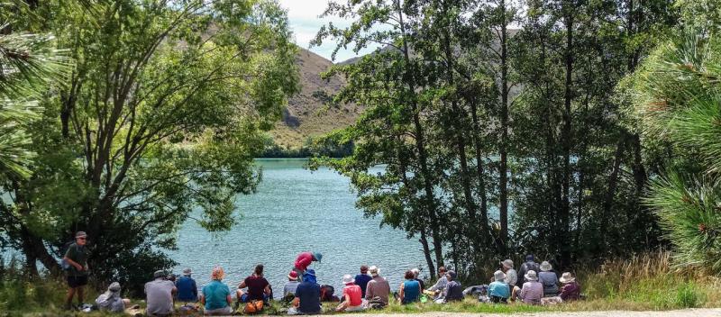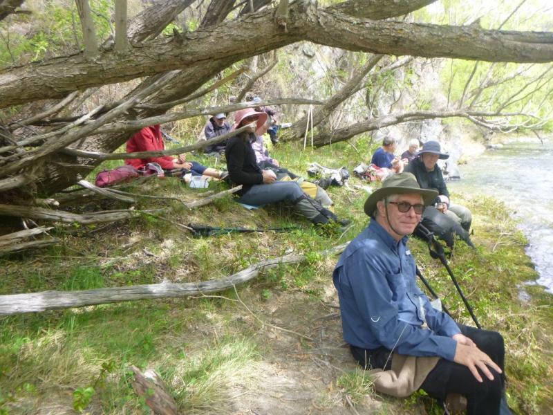 Half an hour later we were back on the track, continuing up the valley towards the striking lenticular clouds driven by the north-west wind. The track continued to wind through the willows and across the dry Otiake River until we met up with the Kurow group, who had followed the A2O track through the vineyard, just where the bike track from the winery meets the riverside track. This determined the luncheon venue and all settled down on the trackside at around 12.15.