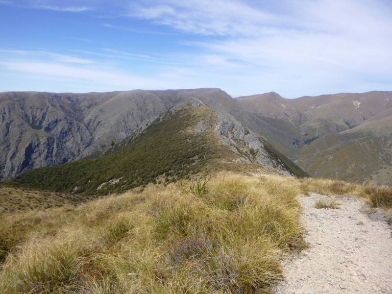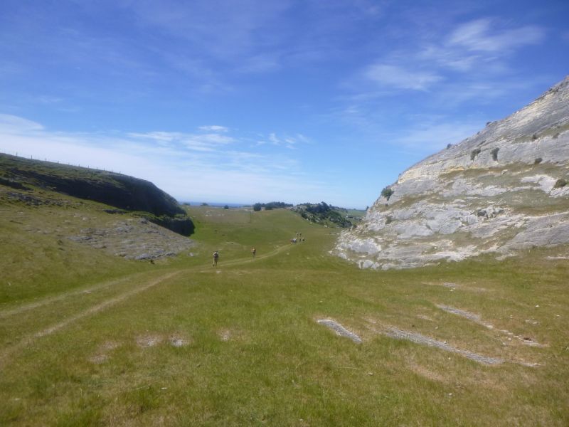 The morning continued through the beech forest which was covered in a carpet of young beech trees waiting for the chance to grow, then it was out into the grassy clearings, interspersed by three very large shingle fans and a couple of little streams.