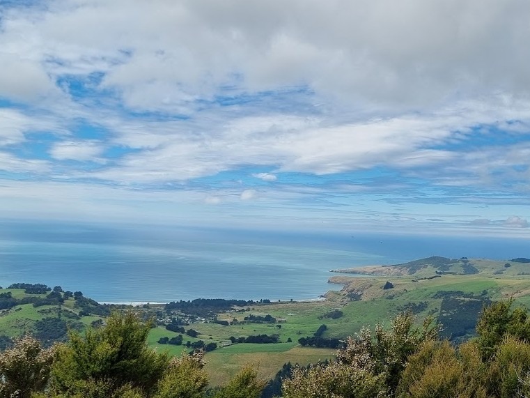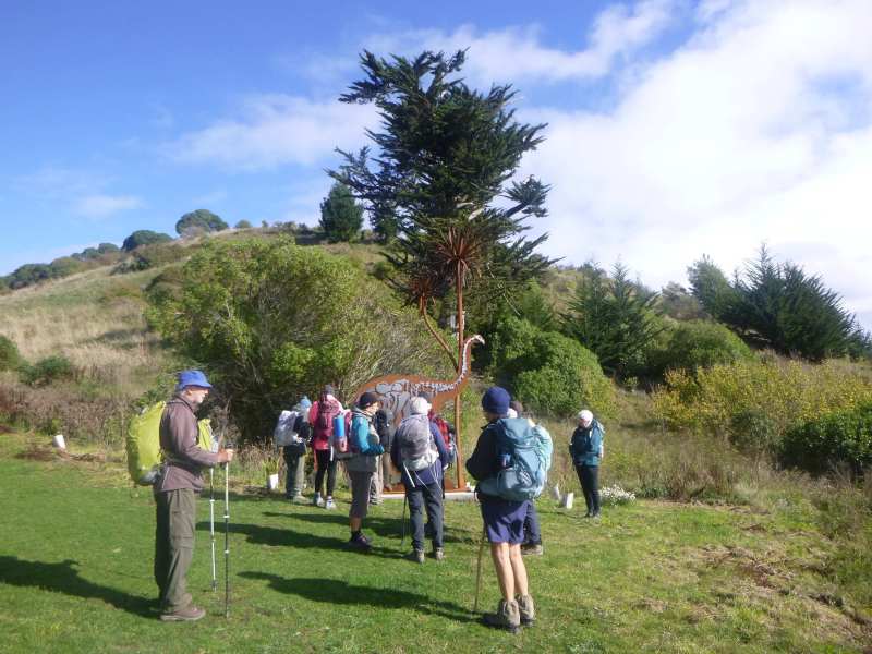 Trip: Access to the Mt Watkin/Hikararoa Scenic Reserve is controlled by DCC bureaucracy. Jane had managed to get a key and to book access this Wednesday and the following one for the Wednesday Walkers. The weather today was not that promising – low cloud shrouded the hilltops and occasional drizzle was promised. However, the forecast for the following Wednesday was even worse, with the prospect of serious rain. So, after the obligatory stop in Palmerston, the four cars drove south through Waikouaiti, turned right on to Ramrock Road, then right again on to Mount Watkin Road which wound its way inland. At (S)Kerr Road, we turned left across the north face of Mt Watkin and parked near the locked gate into the reserve just after 10 o’clock.