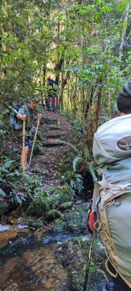 The following should be carried with you, no matter how nice the weather is when you leave. Day pack, boots, socks plus a dry pair in the vehicle, water/wind-proof coat with hood, over-trousers, shorts and long johns or long trousers, thermal singlet, shirt, warm jersey/jacket, gloves/mitts, warm hat, sun hat. NO COTTON OUTER GARMENTS PLEASE. This includes jeans as they contribute to hypothermia when wet. Sunglasses, lunch, snacks/emergency rations, full water bottle, sun block, first aid kit, toilet paper, torch, map, compass, whistle, survival sheet/bag, a bright piece of equipment or clothing. Optional Gaiters, camera, walking sticks, spare clothes in the vehicle.