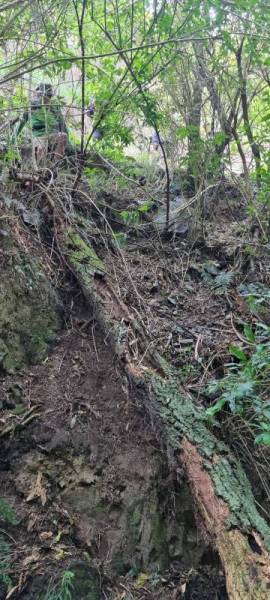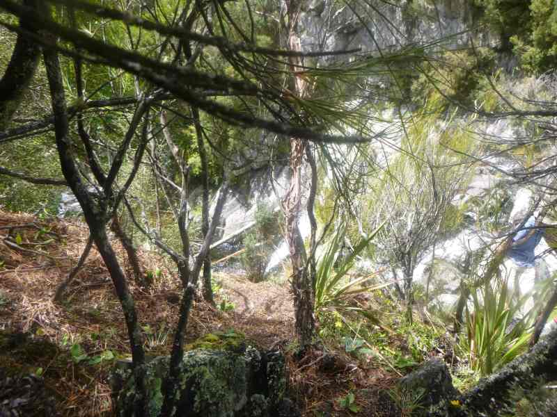 40 minutes later and with a climb of 100 metres, we were opposite the hut which is no longer as visible as it used to be. Thank goodness for the red roof, as the trees are partially obscuring it. The river at this point was very swift and still reasonably high and it was 2pm, so no attempts today at this river crossing.